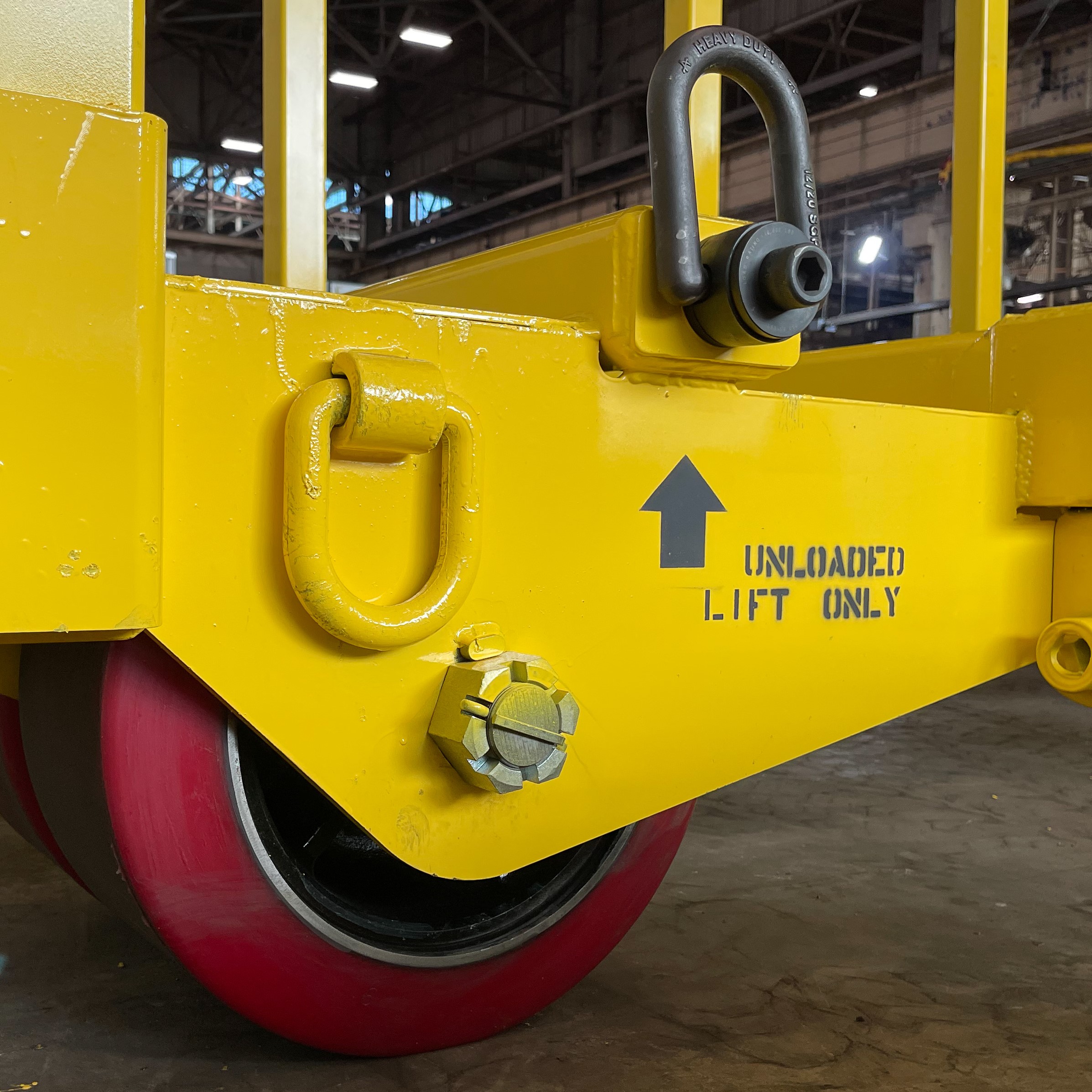 Swivel hoist rings are included to allow the customer to lift and transfer a cart in its unloaded condition.